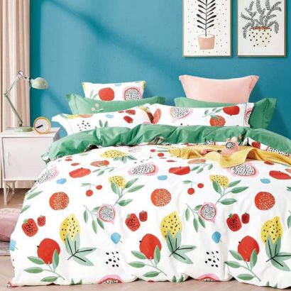 JUAL SET SPREI DAN BED COVER MOTIF BUAH FRUITY WHITE