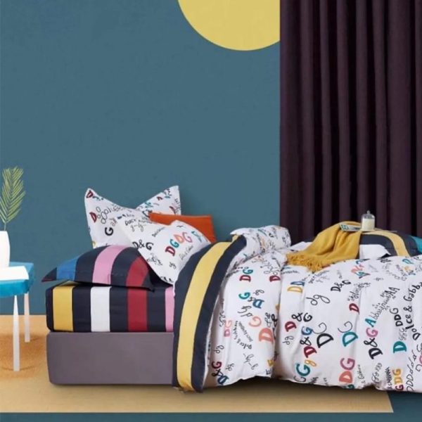 JUAL SET SPREI DAN BED COVER MOTIF HURUF LETTERA WHITE